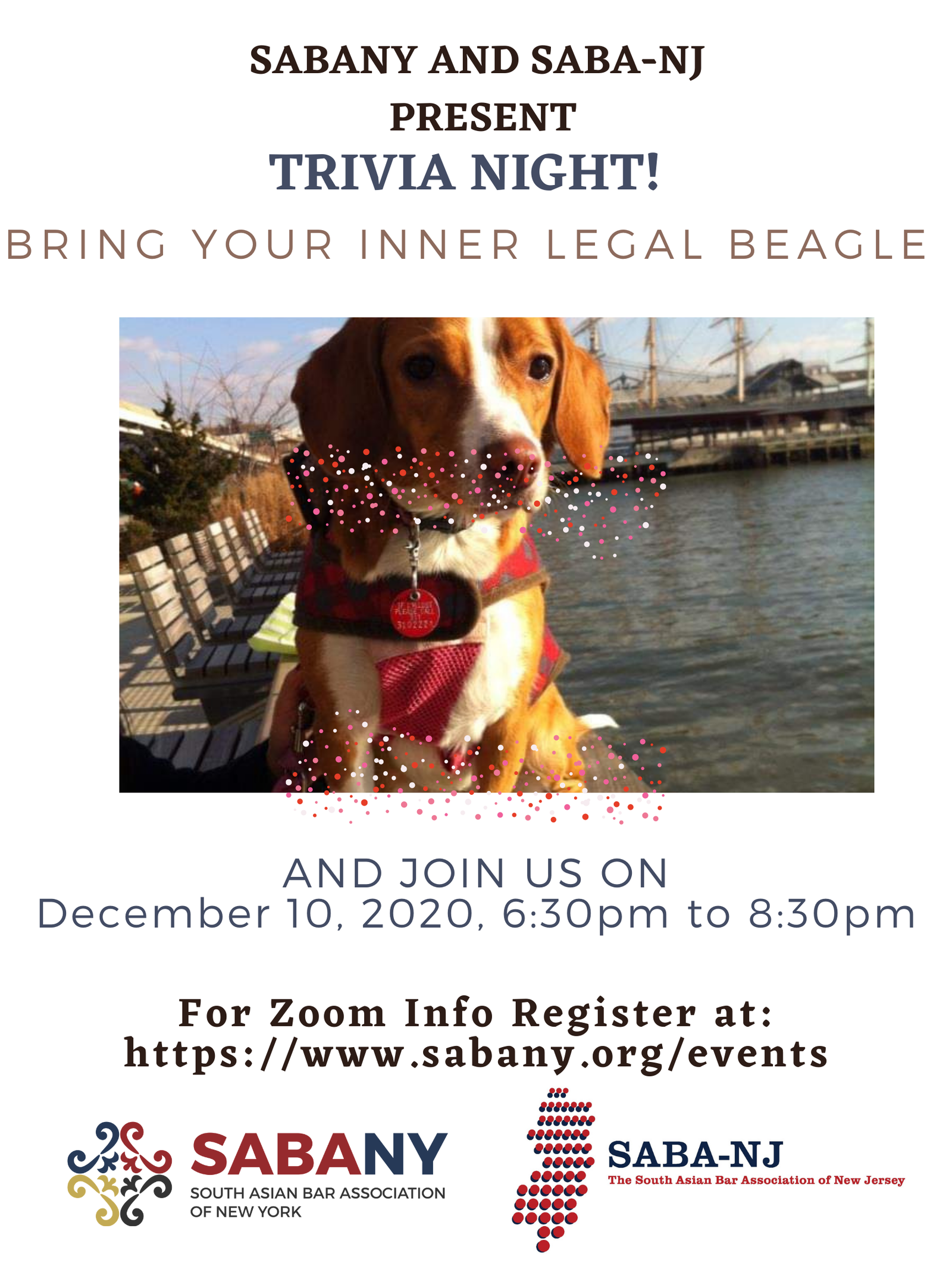 Bring your inner legal beagle to the South Asian Bar Association of NJ (SABA-NJ) and South Asian Bar Association of New York trivia holiday event on December 10th!