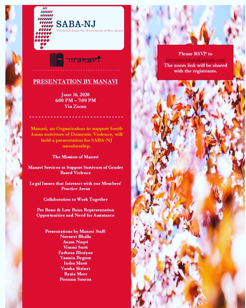 Presentation by Manavi NJ Regarding How to Help Survivors of Domestic Violence
