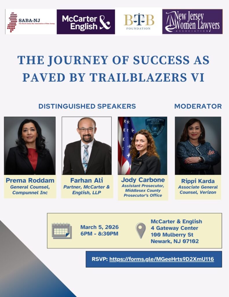 In celebration of Women’s History Month, please join South Asian Bar Association of New Jersey (SABA-NJ), McCarter & English, LLP, New Jersey Women Lawyers Association, and Beyond the Bar Foundation […]