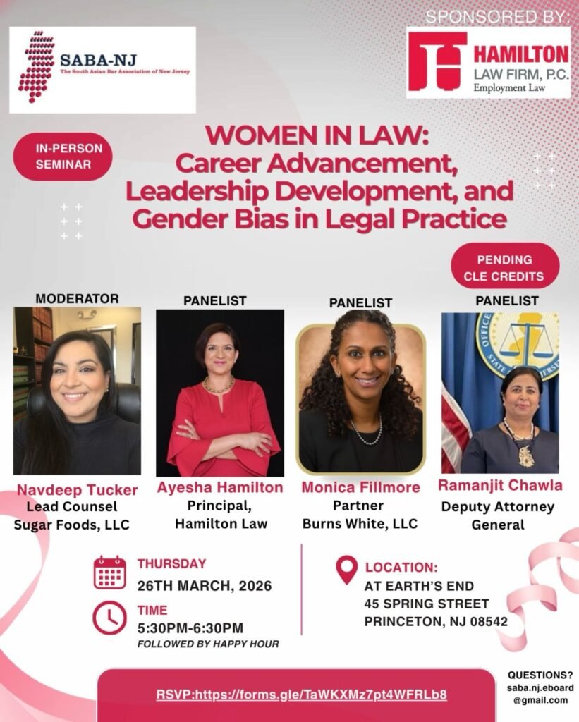 In celebration of Women’s History Month, please join South Asian Bar Association of New Jersey (SABA-NJ), McCarter & English, LLP, New Jersey Women Lawyers Association, and Beyond the Bar Foundation […]